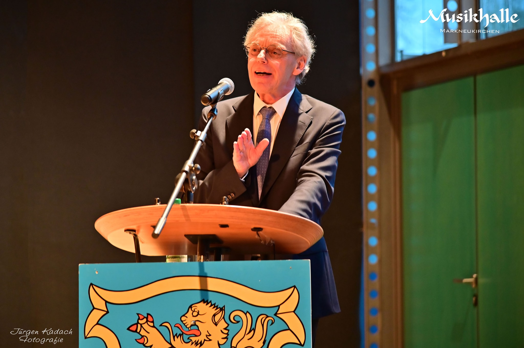 Prof. Berger empfinde „dieses Markneukirchner Sinfonieorchester als ein Symbol ganz im ursprünglichen Sinne des griechischen Wortes sýmphōnos“ – „zusammenklingend“, „harmonisch“ – das scheint „eine innere Botschaft von Markneukirchen zu sein, und die steht am Beginn dieses Wettbewerbes, der Klang Markneukirchens und der Menschen, die hier wohnen, der für das Zusammenklingen steht und gleichzeitig das Weltoffene pflegt“!